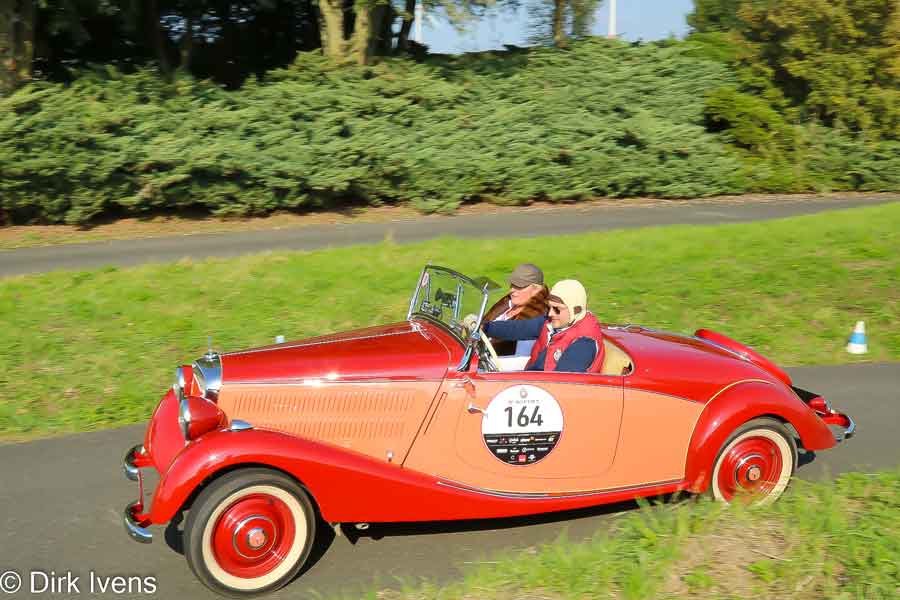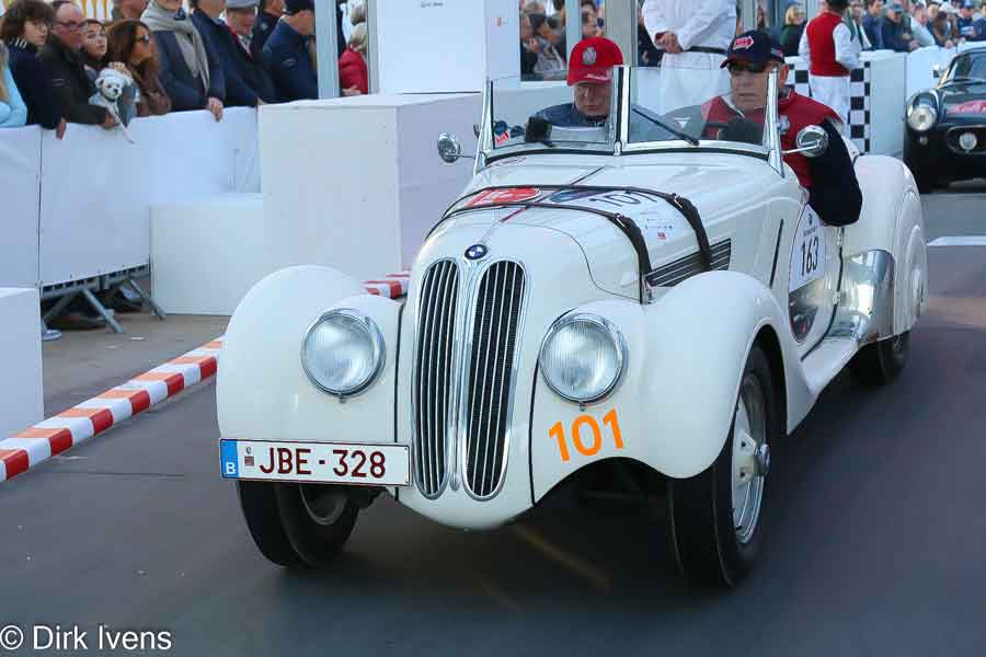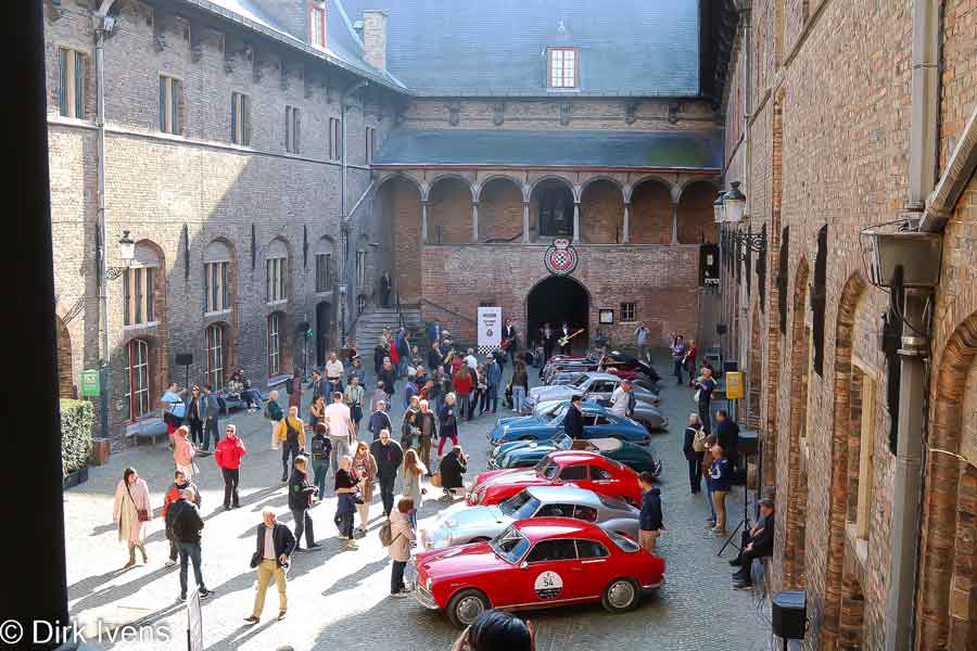 Om beurt vertrok er dan afwisselend een deelnemer aan de rally en een balladeur (zonder regularity) voor een mooie tocht via de polders naar het historische hart van Brugge. In Brugge werden de deelnemers onder massale belangstelling door een fiere burgemeester verwelkomd. De mooie bolides werden op de markt tentoongesteld terwijl de deelnemers van een uitgebreid buffet genoten.